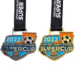 The 2022 Silver Football Medals are beautifully designed medal featuring a dynamic and powerful shape with a gold and silver logo. Made with soft enamel, it exudes a sense of prestige and luxury. The silver football medal has a moderate weight and a comfortable feel, reflecting its exceptional quality. As a symbol of victory and glory in the 2022 football event, silver football medal will forever be cherished as an emblem of triumph.
