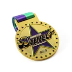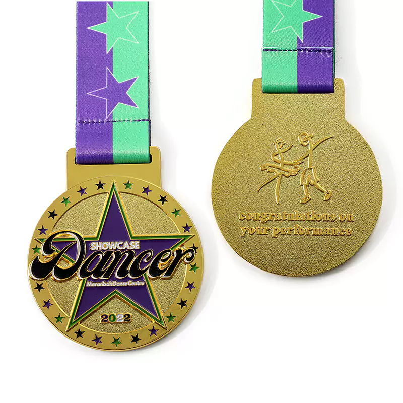 The Ballroom Dancing Medal is a special award given to two dancers who perform an outstanding dance routine together on the beach, includes various styles such as Waltz, Foxtrot, Tango, Cha-Cha, and more.It symbolizes a high recognition of their skills in Ballroom dancing. The medal features a circular design in gold, representing excellence and honor. It represents exceptional teamwork and unparalleled artistic performance, becoming the good honor and a source of pride for dancers in the field of ballroom dance.