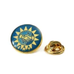 This circular badge with 3D relief and baked enamel epoxy resin features a deep blue baked enamel base, paired with eye ¨C catching golden 3D relief patterns. The handshake pattern and the sun ¨C ray design at the center convey the meanings of cooperation and hope, while the ¡°JHP¡± lettering at the bottom adds a sense of exclusive identity. The epoxy resin process on the surface endows the patterns with a greater sense of luster and three ¨C dimensionality, and the golden edging on the rim is delicate. Equipped with a butterfly clasp, it can be firmly attached to clothes or backpacks. It is an exquisite accessory that combines commemorative value and decorative appeal.