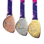 Engraved Irregular Gold Sports Medals Personalised, these unique accolades boast an unconventional shape, each intricately etched with a bird motif that symbolises freedom and achievement. Crafted in gleaming gold, they offer a personalized touch to celebrate exceptional athletic feats, making every victory truly unforgettable.
