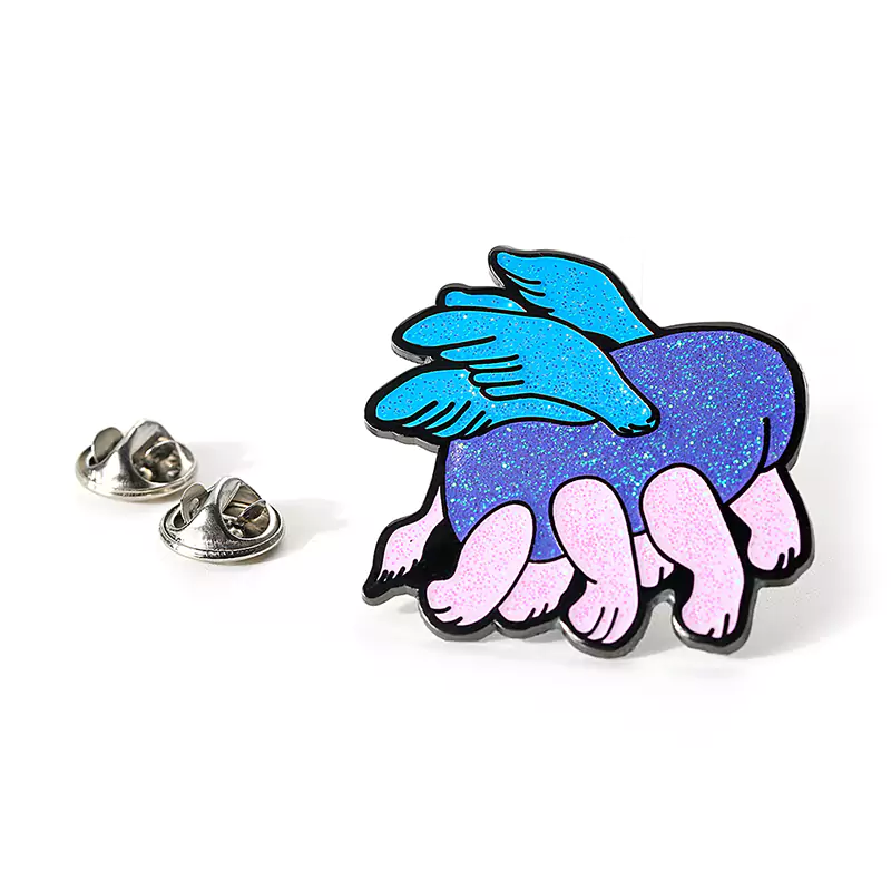 This is a unique hexapod with wings headless enamel badge pin adorned with glitter powder. It is crafted from enamel material. The badge features the shape of a hexapod creature with no head but with wings. Each leg is intricately designed and captures lifelike details. The surface of the badge is coated with sparkling glitter powder, giving it a shimmering effect under light. This badge is captivating and can be used as a lapel pin, clothing accessory, or any other fashion embellishment. Whether as a personal collectible or a gift, it is sure to catch people¡¯s attention and add charm.
