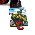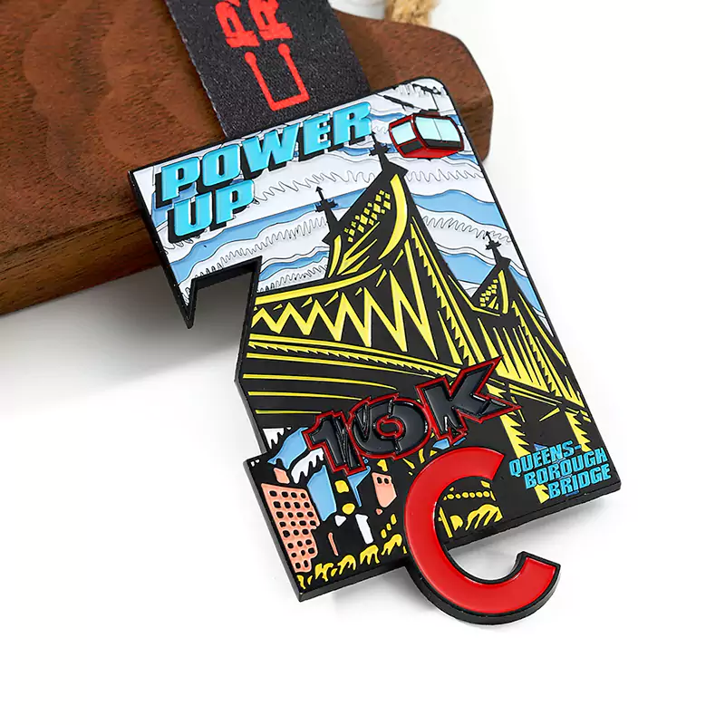 The Power Challenge 10K Ironman Triathlon Black Enamel Medal is approximately 2 inches in diameter and made of high-quality iron material. The front of the medal features the Power Challenge logo, while the back is engraved with the 10K Ironman Triathlon emblem and adorned with beautiful black enamel. This medal exudes a sense of power, with a sleek and elegant design. It serves as a proud symbol for participants who have successfully completed the Power Challenge 10K Ironman Triathlon.