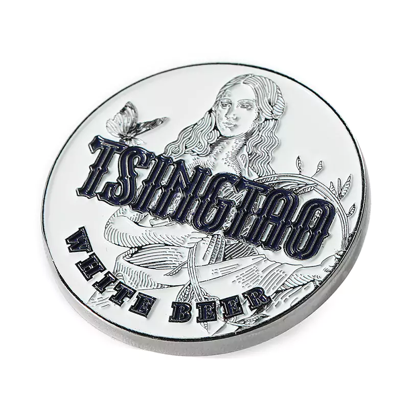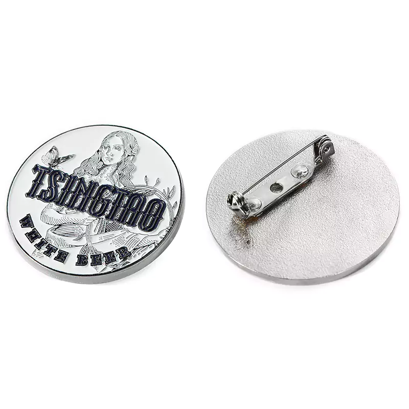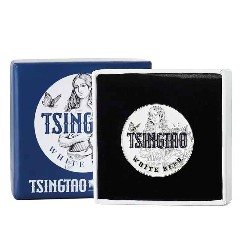 The Qingdao White Beer Round Brooch Roasted Enamel Silver Pins is an exquisite pin made of silver. It features a round design with a roasted enamel finish. The pin showcases the theme of Qingdao White Beer, capturing the essence of this classic beer with intricate detailing. This beer pin boasts a delicate shape, vibrant colors, and demonstrates high-quality craftsmanship and attention to detail.