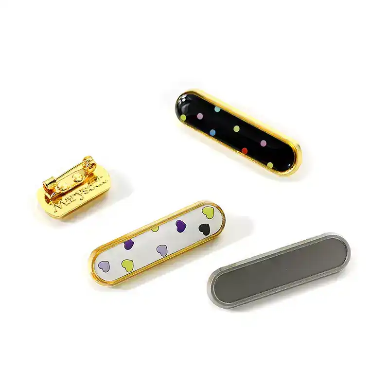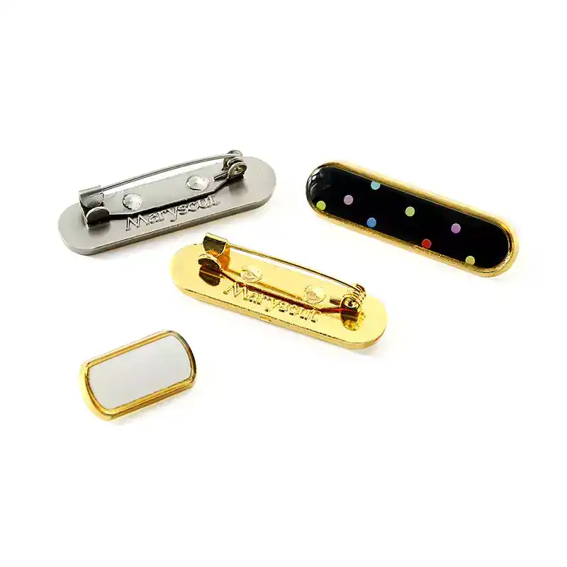 Rectangular epoxy resin metal pin,we have ready-made molds with customizable logos in the middle. The surface is covered with epoxy resin, which is glossy and can effectively protect the product. The back is equipped with safety pins, which are not easy to fall off and come in multiple colors to choose from