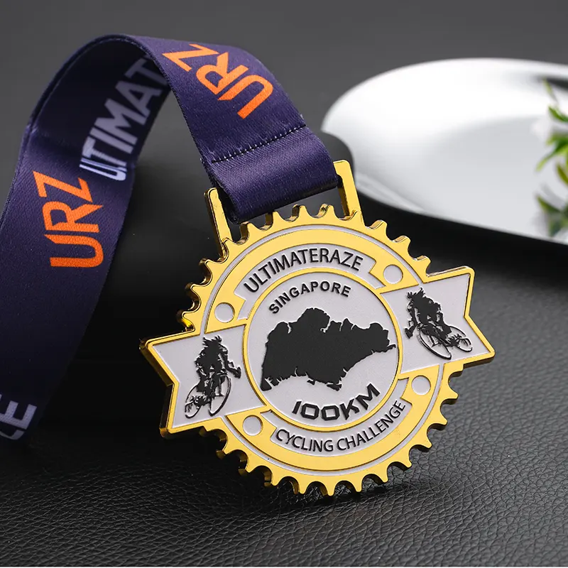The Singapore Ultimateraze Cycling Challenge 100km Completion Medal is a recognition and reward for cyclists who have successfully completed the 100km cycling challenge in the competition.This customized medal symbolizes the perseverance, endurance and courage of the riders in the Ultimateraze Riding Challenge, and will become a symbol of pride for the riders, reminding them of the hardships of the challenge and the joy of success.