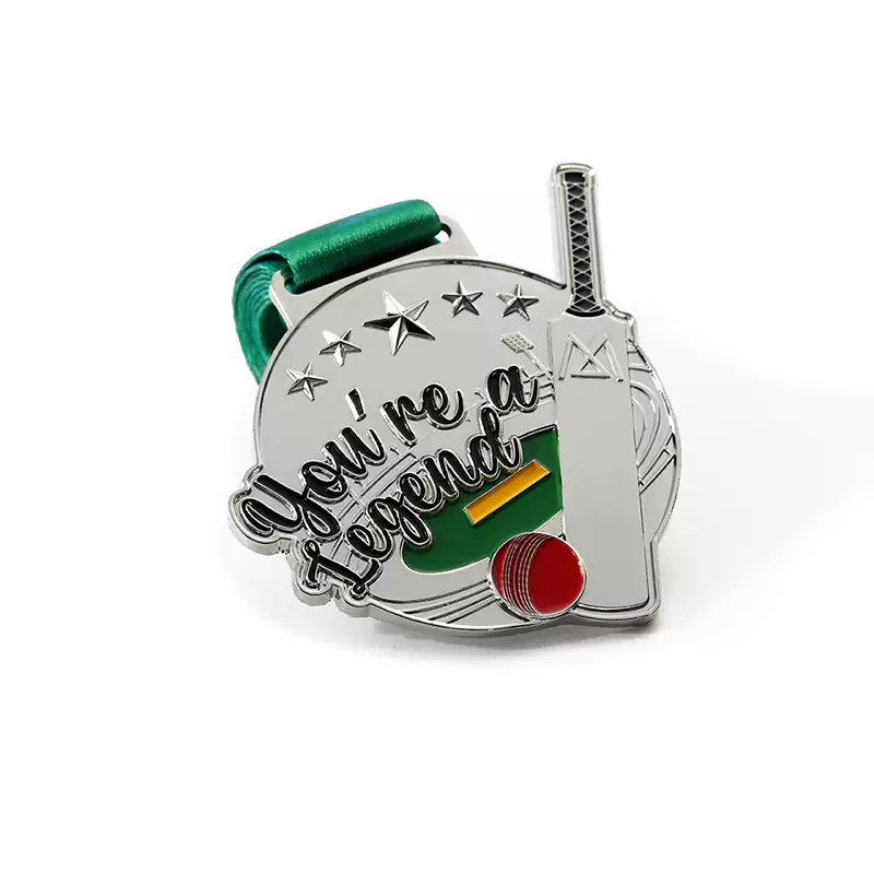 This soft enamel silver medal is designed to recognize outstanding achievements in cricket. The medal has a diameter of approximately 2.4 inches and is made of pure silver with an exquisite enamel coating. There is a three-dimensional image of a cricket player on the front of the medal, with a cricket scene in the background to highlight the theme of the cricket game. The surrounding details are clear, and the edges are decorated with exquisite inscriptions.