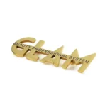 Gold letter pin, available in various metal materials such as zinc alloy, copper, iron, stainless steel, etc. The text supports customization, and we provide free design. The back of the pin is fixed with a safety pin, making it beautiful and exquisite to wear on the chest.