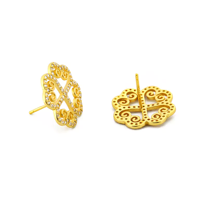 Stainless Steel Gold Hollowed Out Diamond Flower Earrings