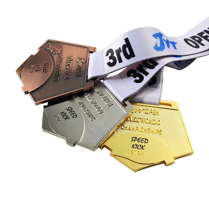 Celebrate your achievements with our exquisite Taekwondo medals, perfect for honoring exceptional skills. Our Taekwondo Side Kick Metal Medal stands out with its unique design, crafted to capture the essence of this dynamic martial art. The intricate Taekwondo medal design features a powerful side kick, symbolizing strength and precision. Made from high-quality materials, these Taekwondo medals are built to last and make a great addition to any collection. Whether for competitions or personal milestones, our Taekwondo medal design ensures you have a keepsake to treasure forever.