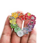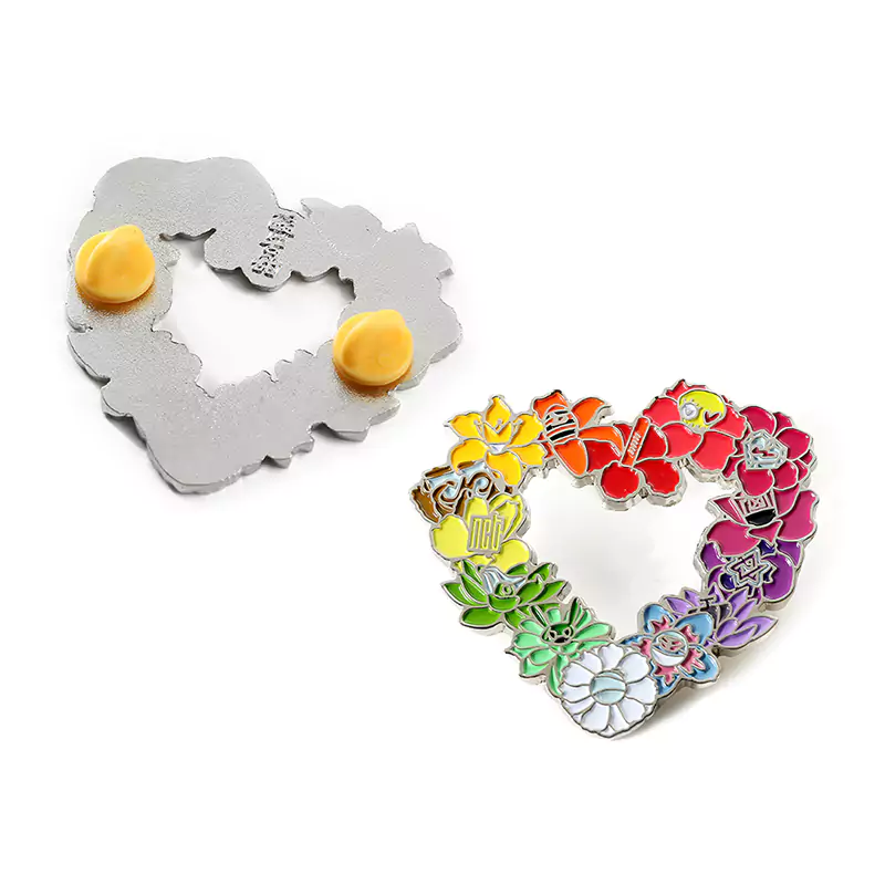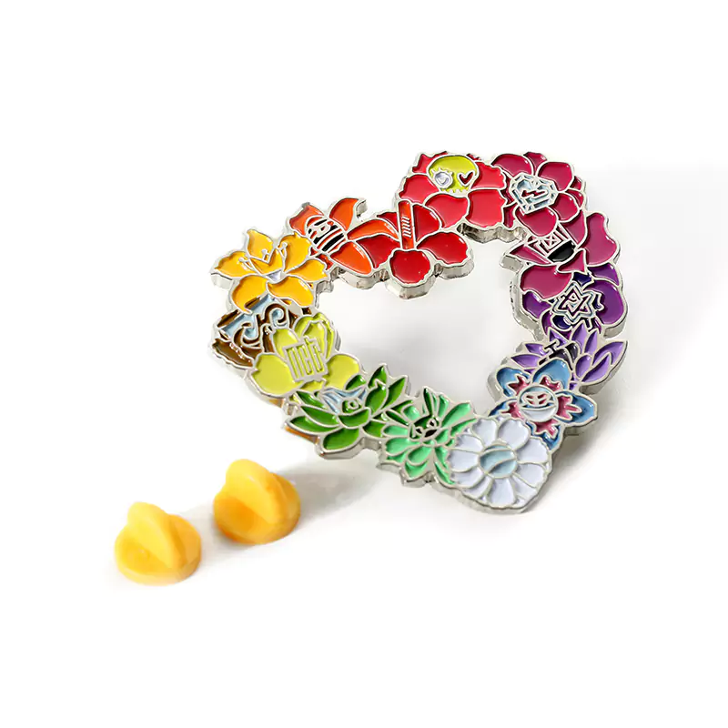 Wreath Shaped Enamel Hollowed Out Badge Pin is a unique and exquisite accessory that combines elegance and craftsmanship. This badge pin features a wreath shape, symbolizing honor and achievement. It is meticulously crafted with enamel, adding vibrant colors and a glossy finish to the design. The badge pin is hollowed out, creating an intricate and delicate pattern that enhances its overall aesthetic appeal. It is a perfect accessory to adorn a lapel, bag, or hat, showcasing a sense of style and sophistication.